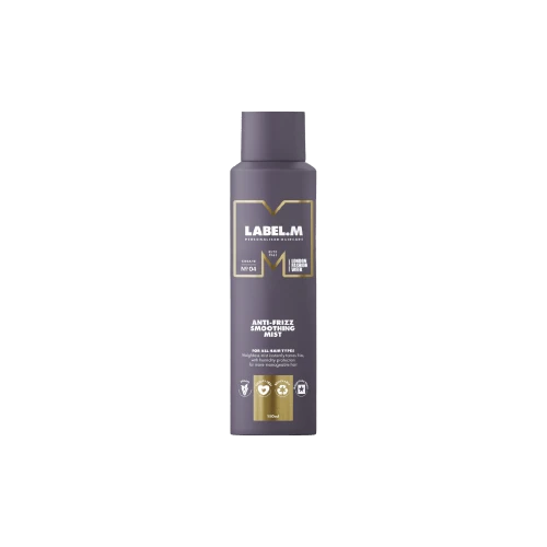De Label.m Anti-Frizz Smoothing Mist is een vegan spray waarmee je het haar glad maakt. Ook zorgt deze spray ervoor dat pluishaar en fly-aways worden getemd.
