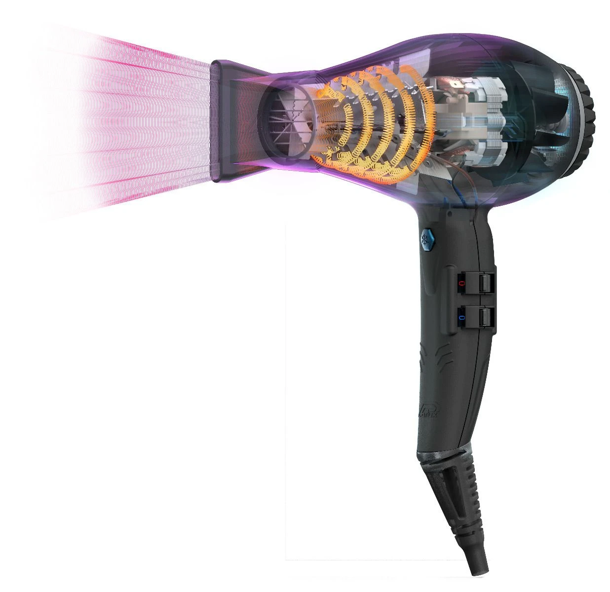 Daarnaast heeft de Parlux föhn een re-designed verwarmingselement die een vermogen biedt tot wel 2250 Watt. De voorkant van de föhn wordt niet warm, dit maakt de föhn extra veilig in gebruik.